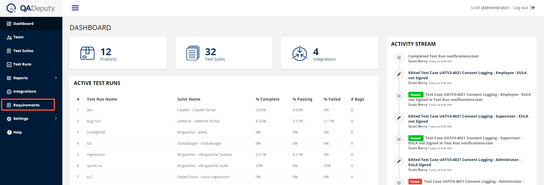 - Note, additional Requirement Types maybe added in Settings--> Requirements.