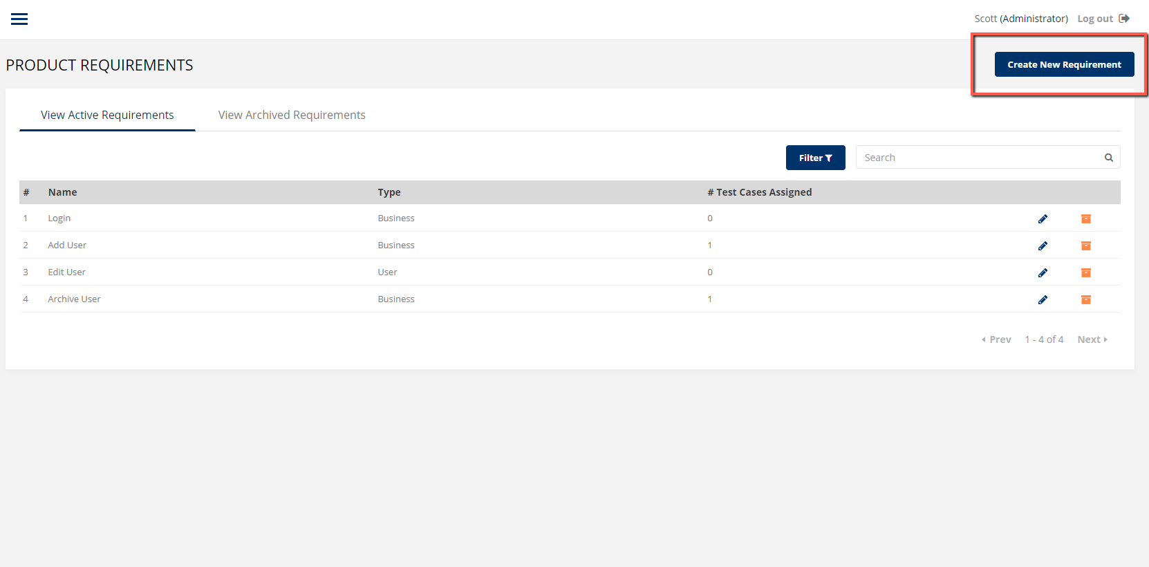 Click "Create New Requirement" in the upper right hand corner. A modal will be displayed allowing you to input the following: